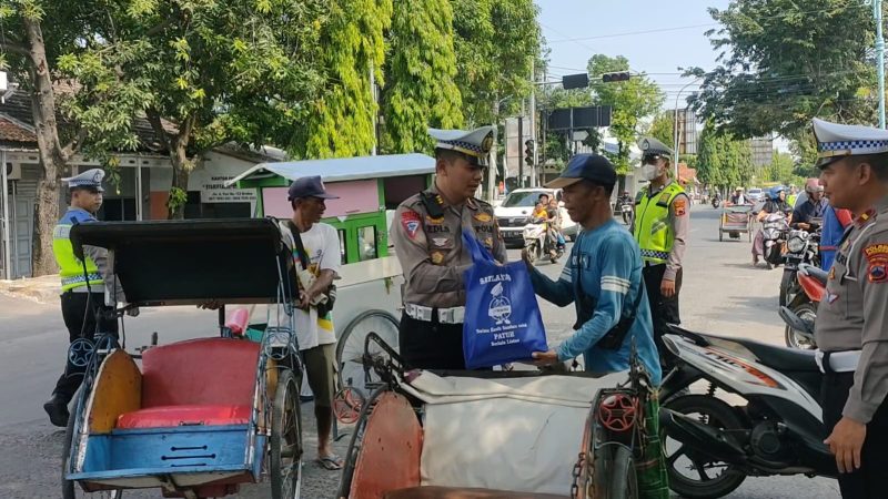 Brebes poskota.online – Satuan Lantas Polres Brebes Polda Jawa Tengah, menggelar aksi Jumat Berkah dengan membagikan paket sembako gratis kepada sejumlah tukang becak dijalan kota Kabupaten Brebes, Jumat (26/5/2023).