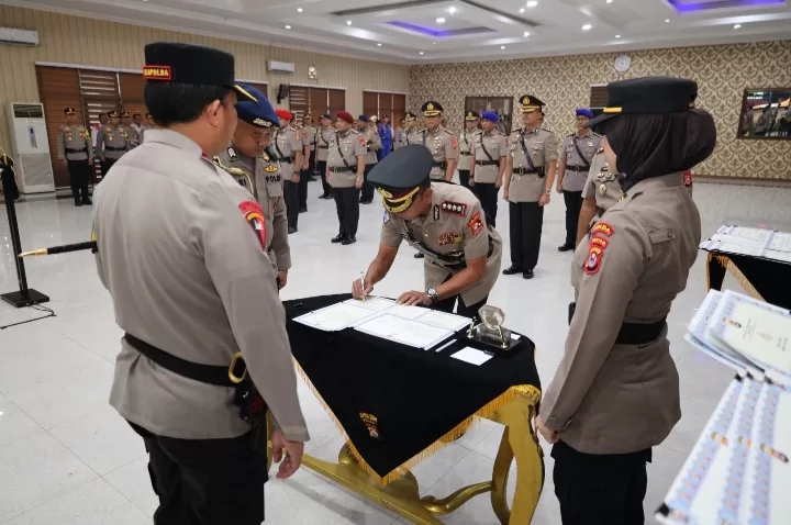 Serang,Poskota.Online-Kapolda Banten Irjen Pol Abdul Karim memimpin upacara serah terima Pejabat Utama (PJU) Polda Banten yaitu Irwasda Polda Banten, Dirlantas Polda Banten, Dirbinmas Polda Banten, Dirresnarkoba Polda Banten, Dirsamapta Polda Banten, Dirpolairud Polda Banten, Dansat Brimob Polda Banten, Kapolresta Tangerang dan Kapolres Pandeglang bertempat di Aula Serbaguna Polda Banten pada Selasa (02/01).