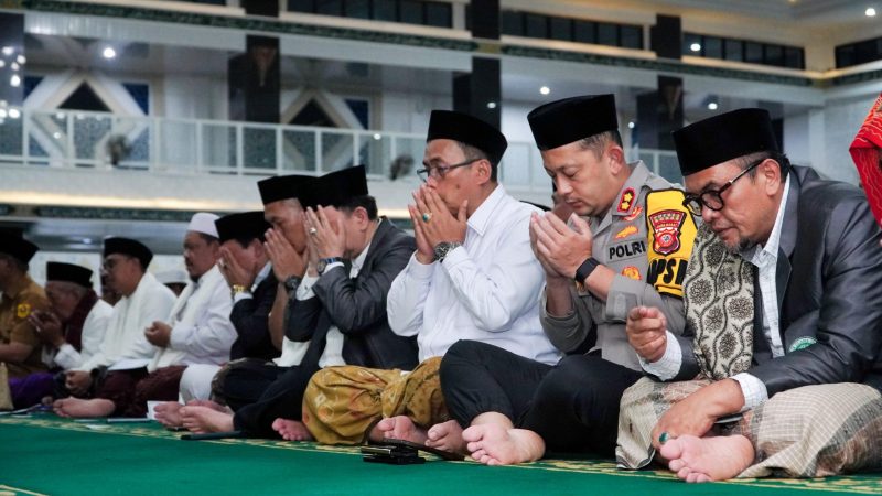 Bogor,Poskota.Online-Kapolres Bogor AKBP Wikha Ardilestanto, S.H., S.I.K., M.Si menghadiri Istigosah Kebangsaan dari Kabupaten Bogor untuk Indonesia bersama jajaran Forkopimda di Masjid Agung Baitul Faidzin, Cibinong, Senin malam (1/9/2025).