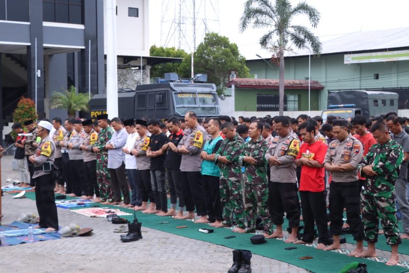Brebes – Poskota.online – Mengawal aksi unjuk rasa serikat buruh di depan kantor DPRD, Kapolres Brebes AKBP Oka Mahendra ikut melaksanakan sholat Jumat bersama para buruh di halaman kantor Gedung DPRD Brebes, Jumat (01/11/2024).