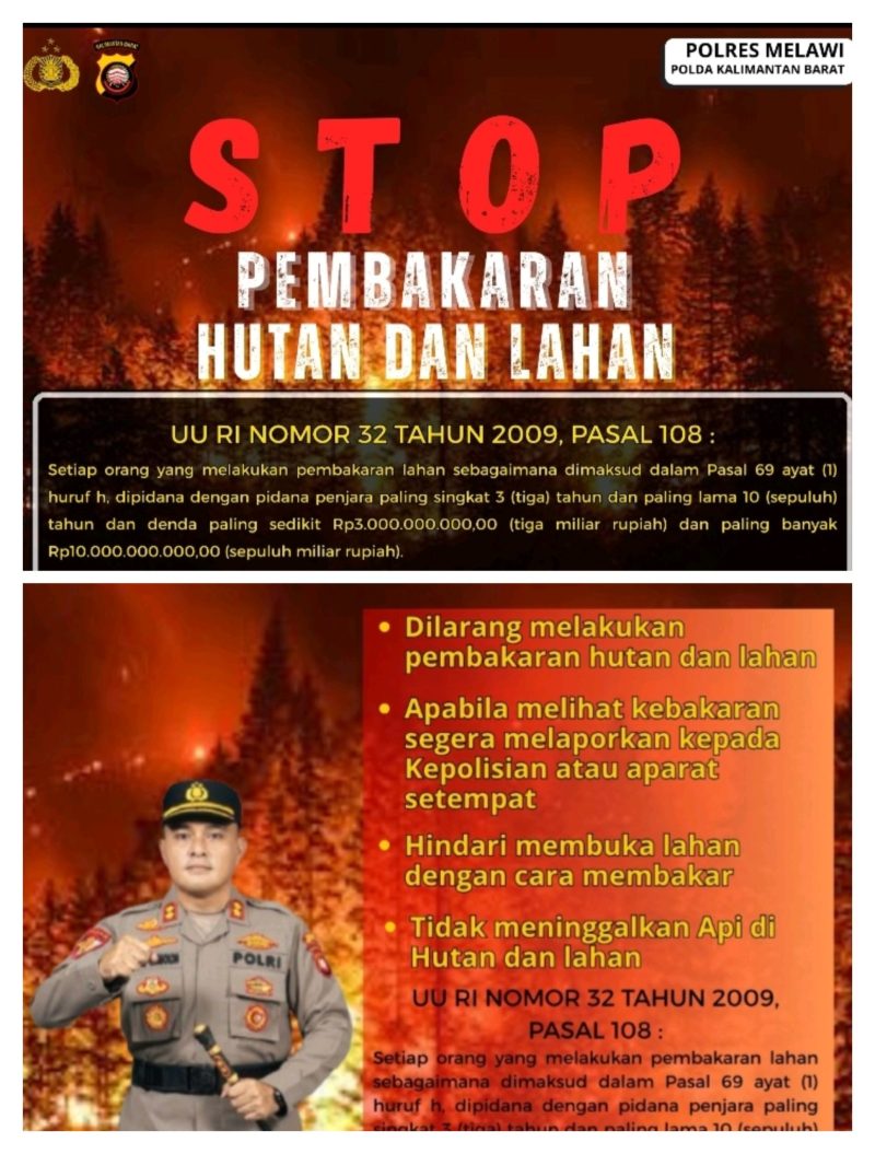 ”Waspada Kebakaran Hutan dan Lahan serta Stop Pembakaran Hutan dan Lahan,” terang Kapolres Melawi.