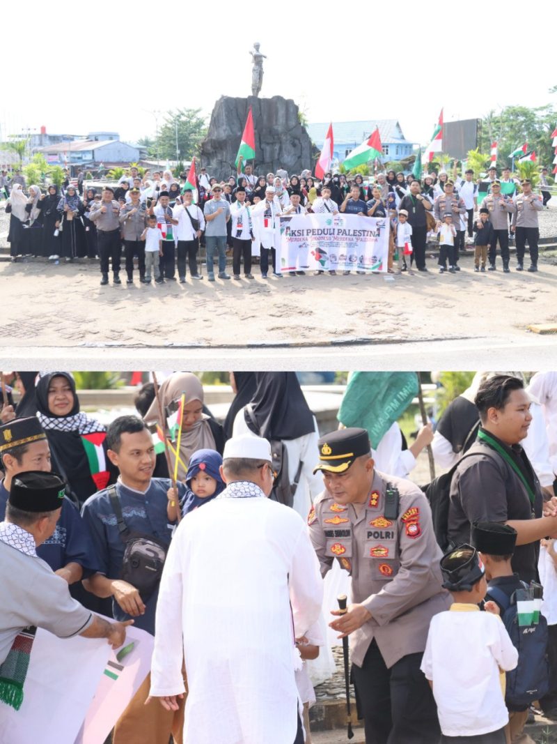 Polres Melawi Polda Kalbar Poskota Online- Memastikan seluruh kegiatan masyarakat yang bersifat mengumpulkan masa berjalan aman tertib dan lancar dengan hadirnya sosok polri di tengahnya adalah wujud hadirnya negara. Ini terlihat dalam pengamanan AKSI DAMAI DAN PENGGALANGAN DONASI KEMANUSIAN UNTUK RAKYAT PALESTINA di pimpin langsung Kapolres Melawi yang di gelar di tugu juang II Nanga Pinoh, Minggu (19/10/25).