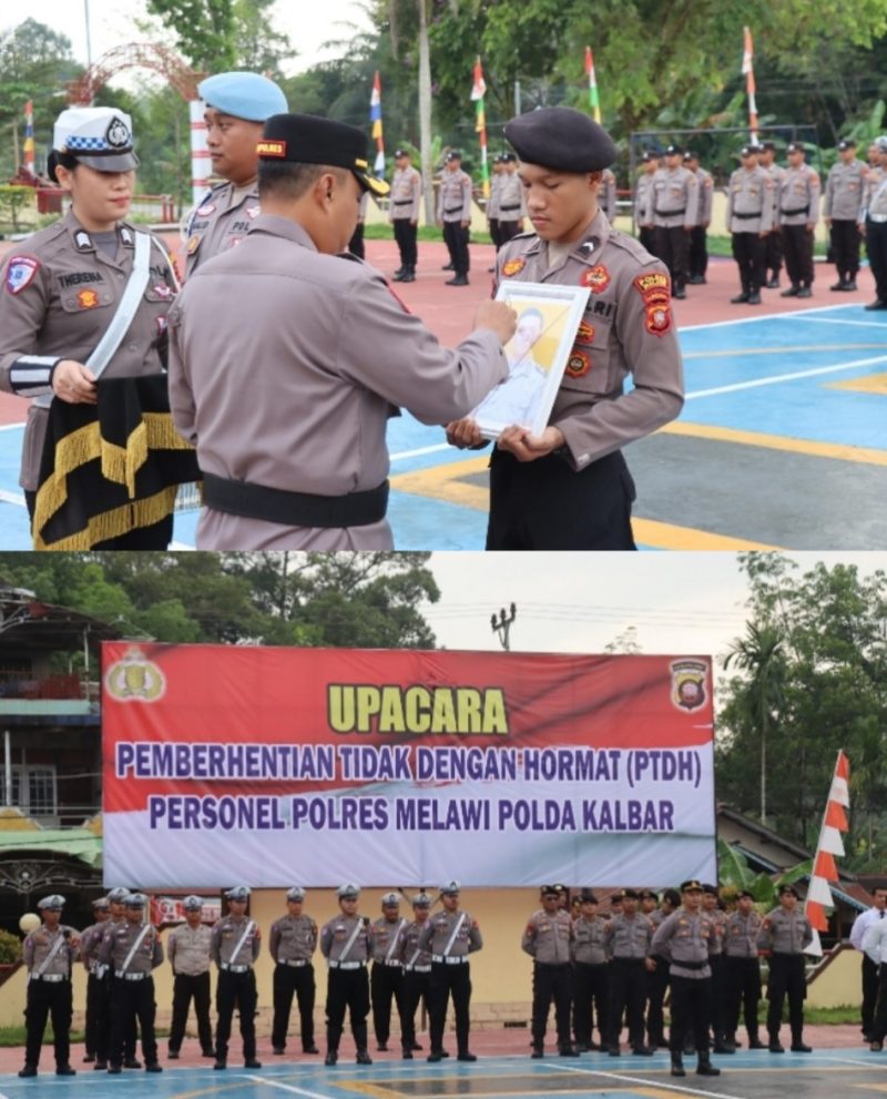 “Hari ini institusi Polri membuktikan implementasi ketegasannya dengan melakukan tindakan tegas kepada Bripka Yudi Mastanto personel Polres Melawi dengan merekomendasikan PTDH yang telah terbukti melakukan tindakan yang melanggar peraturan, norma norma etika dan disiplin anggota Polri serta pada fotonya kami berikan tanda silang,” ujar Kapolres Melawi.