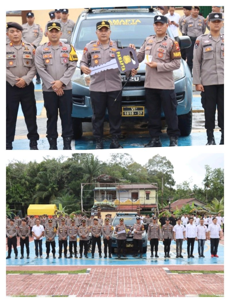 Polres Melawi Polda Kalbar Poskota Online– Memperkuat dan memperluas jangkauan pelayanan polri kepada masyarakat terus dilakukan Polres Melawi, salah satu nya dengan memperkuat kendaraan operasional Pamapta yang di serahkan langsung Kapolres Melawi Polda Kalbar AKBP Harris Batara Simbolon, S.I.K., S.H., M.Tr. Opsla kepada Piket Pamapta Aipda Samsul Hadi di halaman apel Polres Melawi, Rabu (19/11/25).