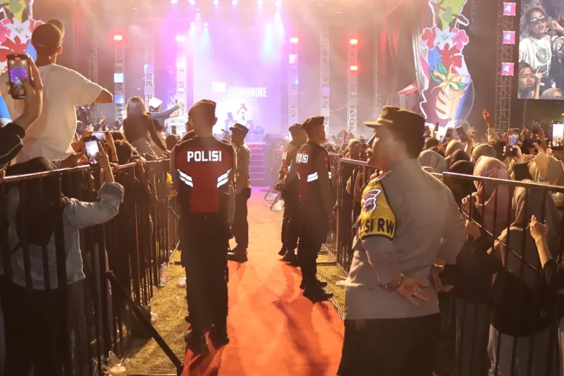 Brebes, poskota.online – Kapolres Brebes Polda Jawa Tengah AKBP Guntur Muhammad Tariq pimpin langsung pengamanan hiburan musik yang berlangsung di komplek GOR Sasana Adhi Karya Brebes pada Sabtu (19/8/2023) malam.