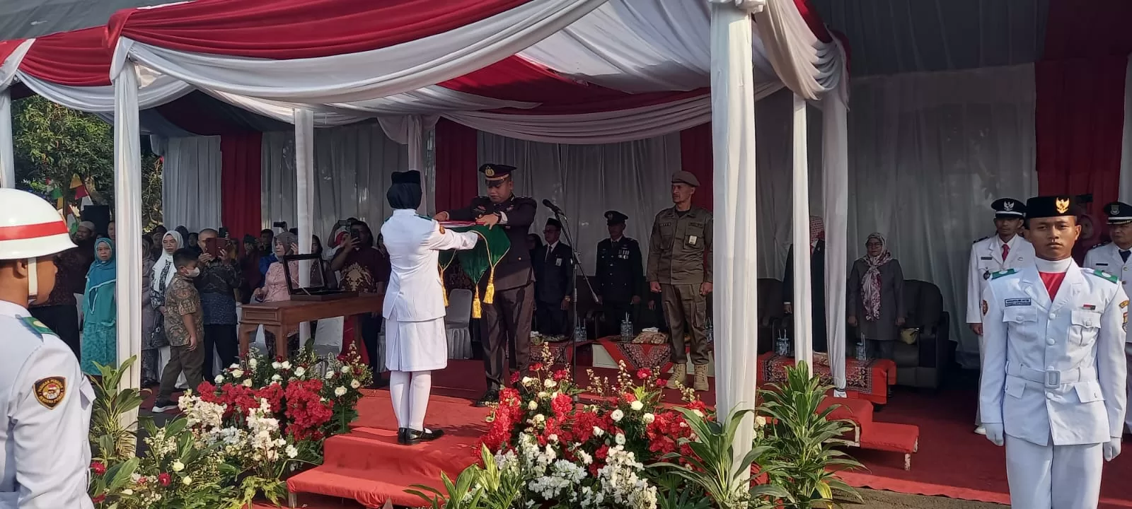 “ Di Momentum peringatan Hari kemerdekaan Republik Indonesia ke- 78 Kemerdekaan RI Tahun 2023 yang mengangkat tema Terus Melaju Untuk Indonesia Maju, Kita sebagai generasi penerus perjuangan dari para pejuang dan pendahulu, sudah seharusnya mengenang jasa para pahlawan yang telah mengorbankan jiwa dan raga dalam mempertahankan NKRI, dimana salah satu wujud hal tersebut adalah dengan pelaksanaan upacara peringatan kemerdekaan dan pengibaran bendera ” Ujar Hotma.(Nurhana)