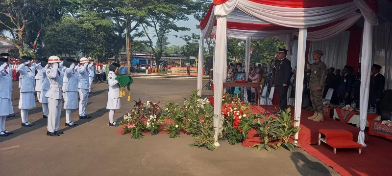 Iptu.Hotma selaku Inspektur upacara dalam kesempatannya menyampaikan, Peringatan hari ulang tahun Republik Indonesia ke-78 pada tahun ini mengangkat tema ” Terus Melaju Untuk Indonesia Maju ”
