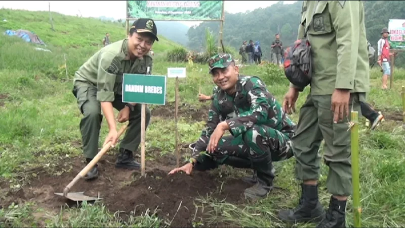 Karya Bhakti TNI, Kodim Brebes Tanam 2.500 Bibit Pohon di Sirampog