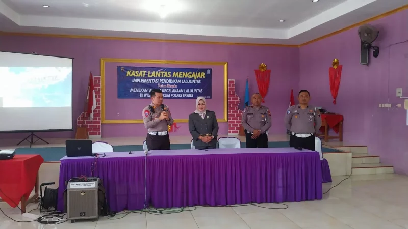 Brebes, poskota.online – Kasat Lantas Mengajar, merupakan program Dirlantas Polda Jateng, yang diterapkan diseluruh wilayah polres se-Jawa Tengah. Salah satunya Satlantas Polres Brebes, yang menyasar pelajar dari kalangan Pelajar SMP, yang digelar di aula SMP Negeri 1 Bumiayu Brebes, Rabu (23/08/23) pagi.