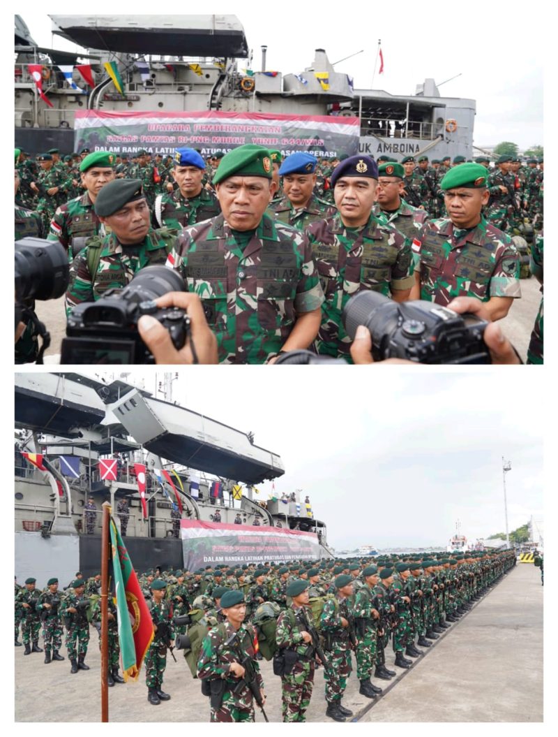 “Berangkat dari sini dalam keadaan siap siaga dan waspada, hilangkan perasaan-perasaan masih di daerah aman, dengan demikian akan menimbulkan naluri tempur. Pastikan berangkat 450 pulang 450,” pungkasnya.