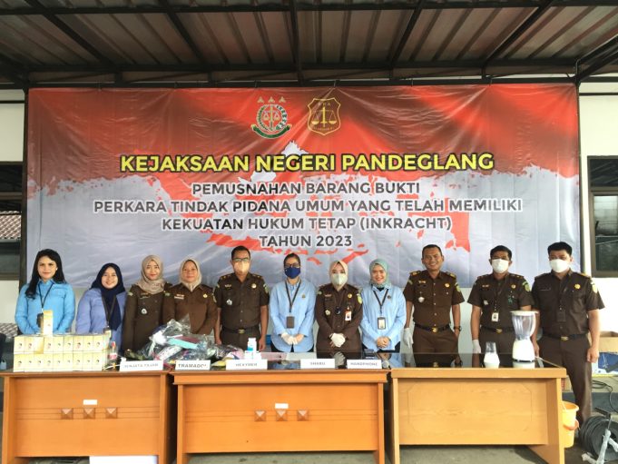Kegiatan Pemusnahan barang bukti yang dilakukan Kejari Pandeglang tersebut diantaranya Pengelolaan Barang Bukti dan Barang Rampasan berdasarkan Putusan Pengadilan Negeri Pandeglang yang diperintahkan kepada pihaknya (Kejaksaan) selaku eksekutor setelah putusan hakim.