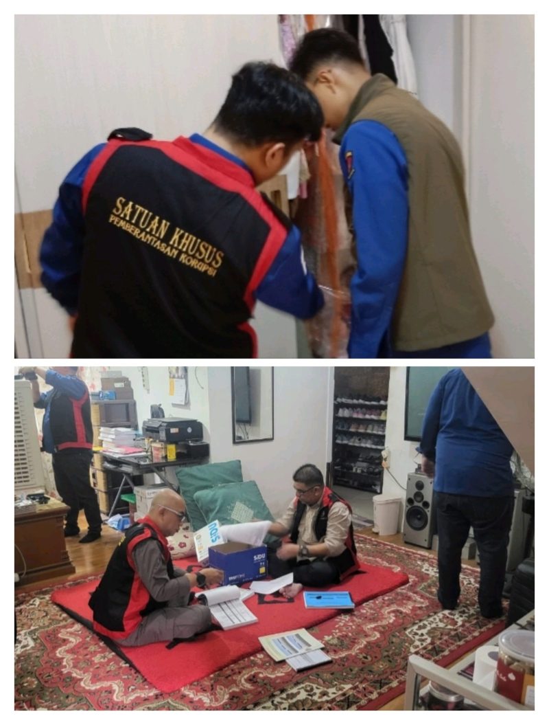 Kegiatan penggeledahan dilaksanakan sesuai dengan ketentuan hukum acara pidana, disaksikan oleh pihak pengelola kantor serta perangkat setempat. Tim penyidik dibagi dalam beberapa tim untuk melakukan penggeledahan di beberapa lokasi yang telah ditentukan, antara lain :