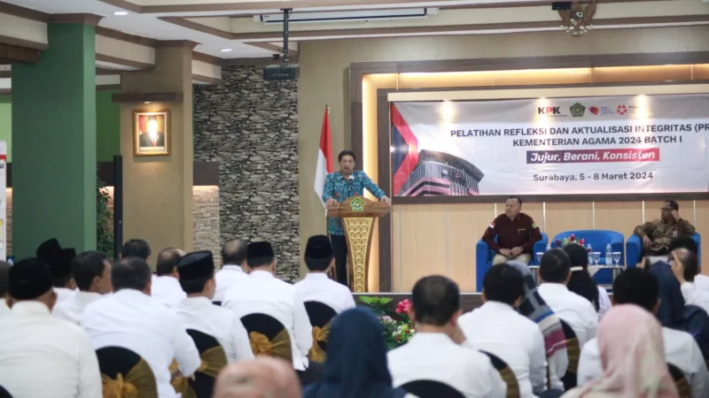 Surabaya, Poskota.Online – Kementerian Agama (Kemenag) bekerja sama dengan Komisi Pemberantasan Korupsi (KPK) menyelenggarakan Pelatihan Refleksi dan Aktualisasi Integritas (PRESTASI) bagi para pejabat. Pelatihan ini bertujuan untuk membangun integritas dan membentuk agen perubahan di lingkungan Kemenag.