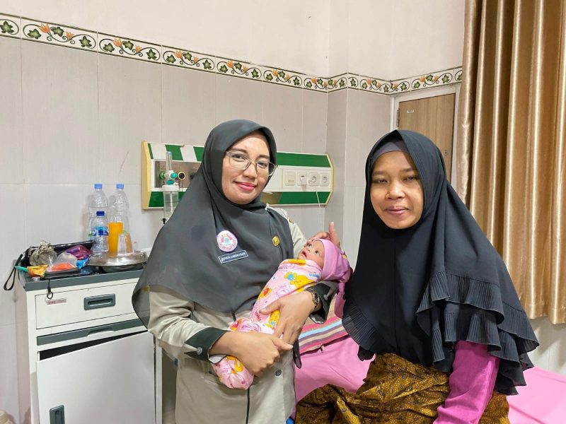 Anak pertama yang lahir pada pukul 12.00 WIB adalah putri dari pasangan Elin Rias Tuti dan Wasnadi, warga Desa Tegongan, Kecamatan Tanjung. Bayi perempuan ini memiliki berat badan 2.600 gram dan panjang badan 47 centimeter.