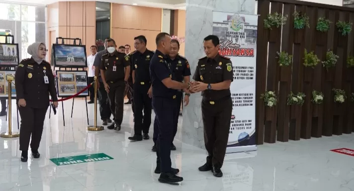Tanjungpinang,Poskota.Online-Kepala Kejaksaan Tinggi Kepulauan Riau Dr. Rudi Margono, SH., MHum didampingi Wakil Kepala Kejaksaan Tinggi Kepulauan Riau Rini Hartatie, SH., MH., Aspidum Kejati Kepri, Aspidsus Kejati Kepri, Koordinator Bidang Intelijen Kejati Kepri, dan Kasi Penkum Kejati Kepri menerima kunjungan dari Kepala Kantor Pelayanan Utama (KPU) Bea Cukai Batam Rizal, SH., Kabid Penindakan dan Penyidikan Bea Cukai Batam Sisprian Subiaksono, SE., MM., Kabid Bimbingan Kepatuhan dan Layanan Informasi M. Rizki Baidillah, SE., MM., Kasi Penyidikan KPU Bea Cukai Batam Hari Kusuma Setia Negara, MH., Selasa (06/02/2024).