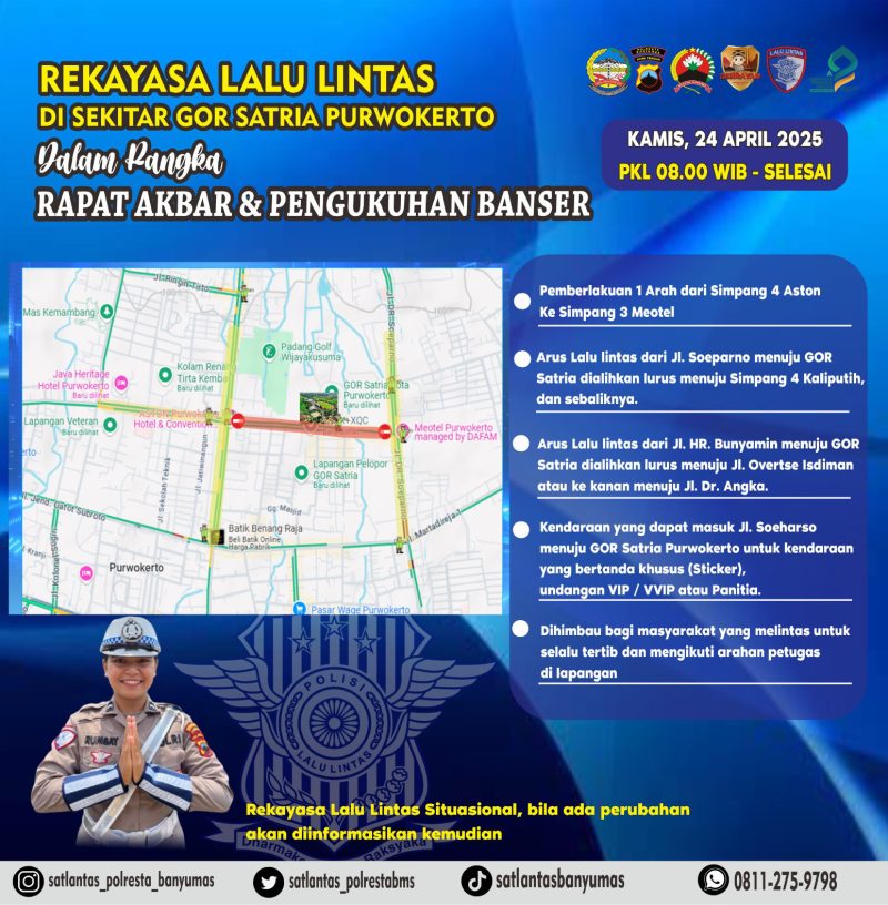 Disamping ini, kami juga melakukan sosialisasi rekayasa lalu lintas dan tertib berlalu lintas melalui media sosial terkait dengan adanya kegiatan Harlah GP Ansor ke 91 tahun 2025 yang berlangsung di wilayah Kabupaten Banyumas, imbuhnya.