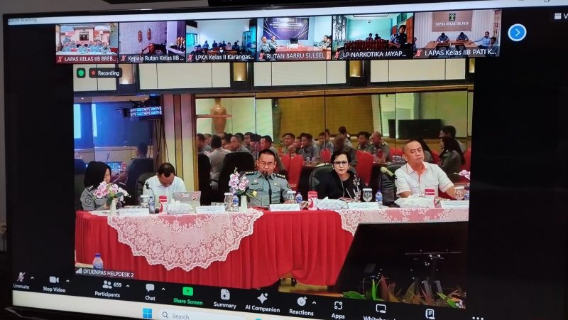 POSKOTA.ONLINE – Dalam rangka meningkatkan kualitas dan menjaga standar pelaksanaan tugas Pemasyarakatan khususnya di bidang Pengamanan, Kepala Lembaga Pemasyarakatan (Lapas) Kelas IIB Brebes beserta jajaran mengikuti kegiatan Penguatan Teknis Pemasyarakatan Bidang Pengamanan secara daring via zoom, Selasa (25/06).