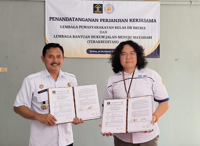Penandatanganan ini bertujuan untuk membantu dan memudahkan warga binaan dalam proses hukum. PKS ini langsung ditandatangani Kalapas Brebes, Isnawan selaku pihak Kesatu dan Pengawas LBH Jalan Menuju Matahari, David Surya selaku pihak kedua.