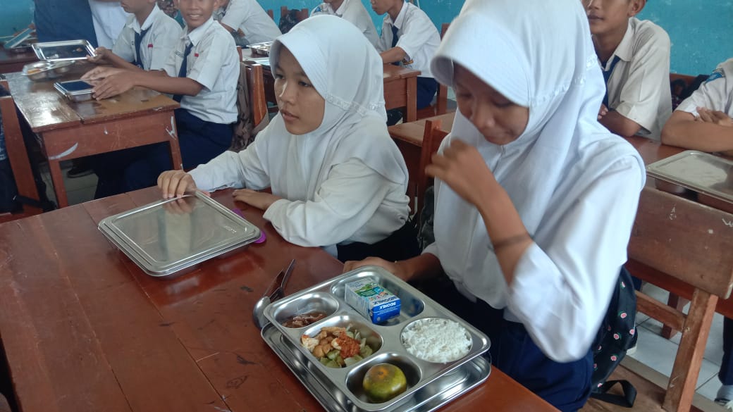Setelah prosesi pembagian porsi makan siang bergizi gratis dengan jumlah 938 porsi disesuaikan dengan jumlah siswa- siswi