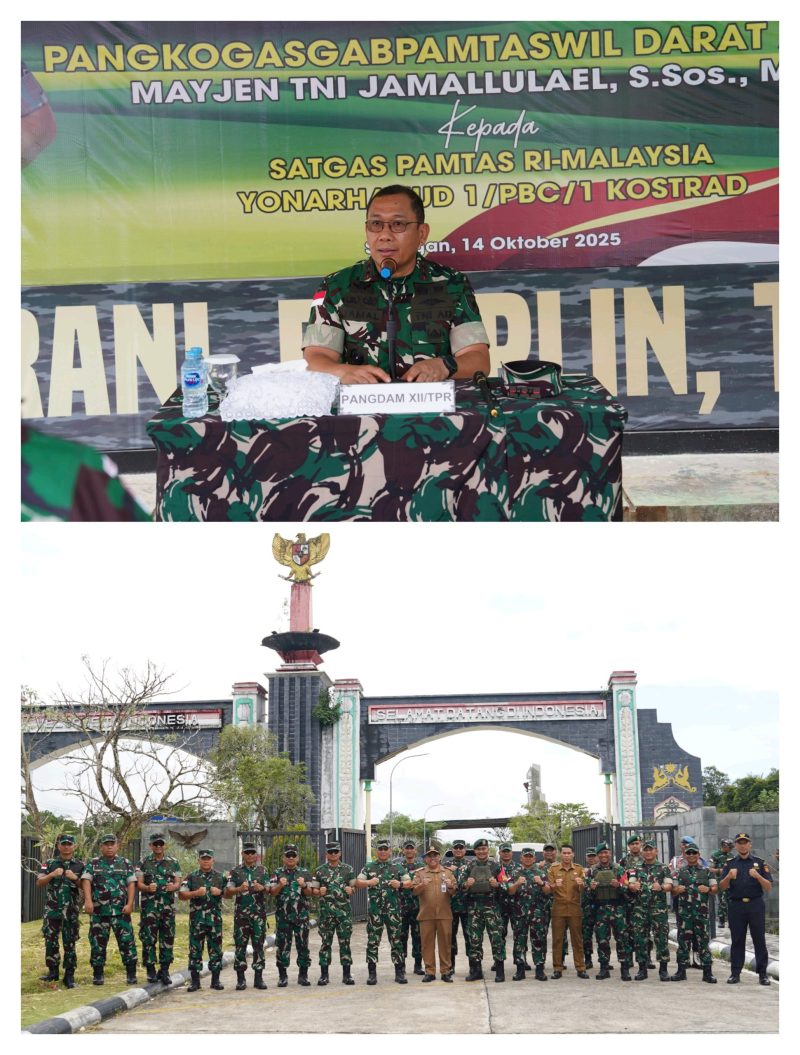 SAMBAS Poskota Online – Usai melaksanakan kunjungan kerja di Bengkayang, Pangdam XII/Tanjungpura Mayjen TNI Jamallulael, S.Sos., M.Si., melanjutkan lawatannya ke wilayah Sambas. Kali ini mengunjungi PLBN Aruk dan Pos Koki Sajingan, Desa Sebunga, Sajingan Besar, Sambas, Selasa (14/10/2025).