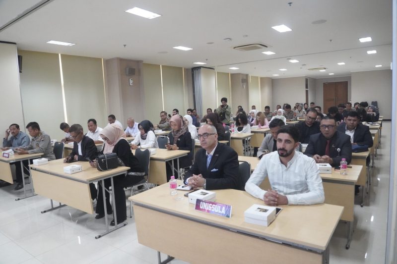 Dalam kegiatan tersebut, hadir tiga narasumber, yakni Dr. Ali Al-Hammouri dari Applied Science Private University of Jordan, Penyidik Madya Ditreskrimum Polda Jateng, dan Advokat Muda Bidkum Polda Jateng. Para narasumber membahas sistem keamanan dan penegakan hukum di Indonesia dan Yordania, termasuk peran kepolisian dalam menjaga stabilitas nasional serta penerapan prinsip keadilan restoratif dalam penegakan hukum.