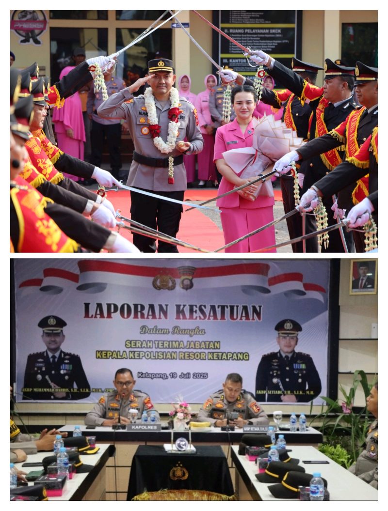 KETAPANG Poskota Online– Polda Kalbar, Suasana khidmat dan penuh nuansa kearifan lokal menyelimuti Markas Komando Polres Ketapang pada Sabtu pagi (19/07/2025), saat AKBP Muhammad Harris, S.H., S.I.K., M.I.K., CPHR, untuk pertama kalinya secara resmi menginjakkan kaki di lingkungan institusi yang kini dipimpinnya sebagai Kapolres Ketapang. Kedatangan Kapolres Ketapang tersebut disambut hangat oleh jajaran personel Polres, forkopimda, tokoh adat, dan masyarakat, dengan prosesi penyambutan yang sarat makna budaya.