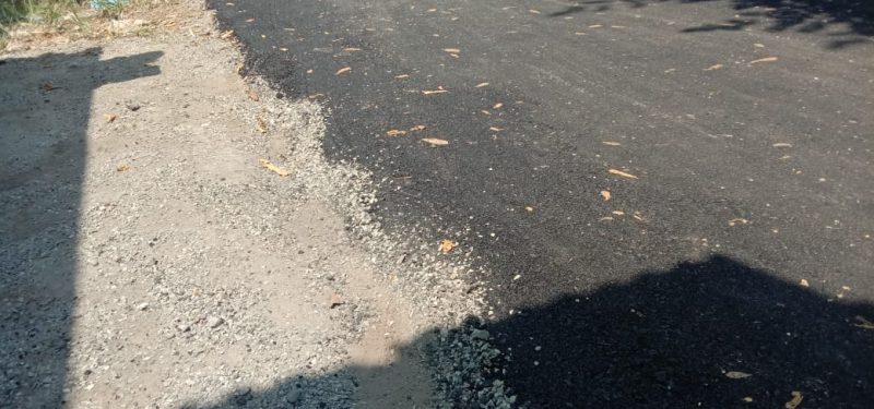 “Dasar jalan tidak dikicir (diratakan dan diberi agregat dasar). Proses penggilasan juga sangat kurang, hanya dilakukan satu atau dua kali saja. Bisa dibuktikan banyak retakan dan aspal yang gembur. Di depan warung nasi itu, saya injak sedikit saja langsung mlotot (terkelupas),” jelasnya.