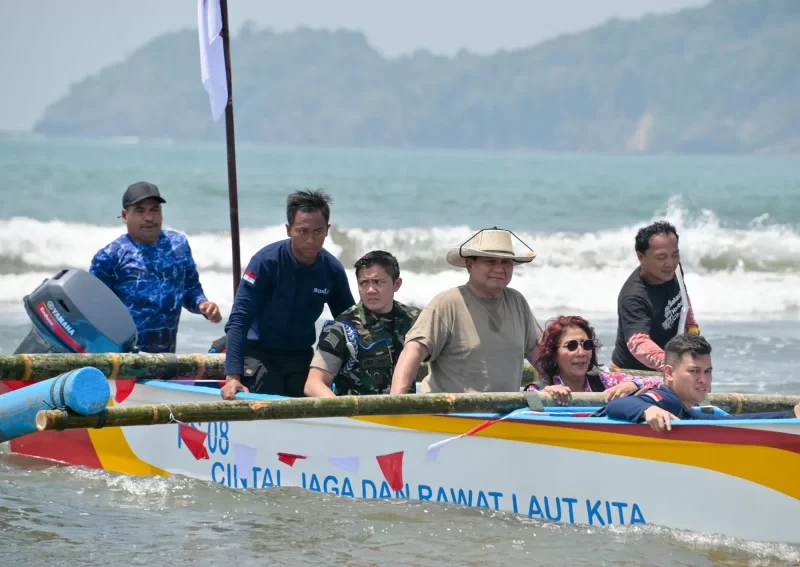 Pangandaran, Poskota.online – Menteri Pertahanan RI Prabowo Subianto memberikan bantuan 10 unit kapal disertai mesin kapal untuk para nelayan di Pantai Aquarium Piamari Pangandaran, Jawa Barat, Rabu (11/10). Selain pembagian kapal, digelar juga aksi bersihkan Pantai Pangandaran bersama Pandu Laut Nusantara, masyarakat, nelayan, dan pedagang sekitar.
