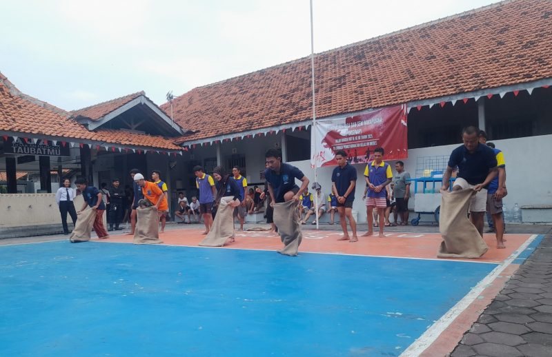 Brebes, Poskota.online – Dalam rangka memeriahkan HUT ke-80 Kemerdekaan Republik Indonesia, Lapas Kelas IIB Brebes Kanwil Ditjenpas Jawa Tengah menggelar berbagai perlombaan tradisional yang penuh keceriaan, salah satunya lomba balap karung khusus untuk warga binaan, Kamis (14/8). Kegiatan ini dilaksanakan di lapangan blok hunian Lapas dengan diikuti puluhan warga binaan dari berbagai blok hunian. Sorak sorai dan gelak tawa terdengar memenuhi area lomba saat para peserta beradu cepat melompat dengan karung, berusaha mencapai garis finish terlebih dahulu.