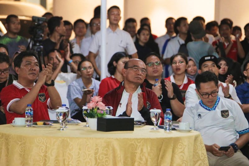 Banyak dari penonton menyaksikan pertandingan sambil berdiri yang tidak menyurutkan semangat mereka untuk mendukung Timnas Indonesia. Antusiasme dan sorak sorai menyeruak ketika pemain Indonesia berhasi mendekati gawang lawan dan menciptakan peluang. Menko Muhadjir juga terlihat asyik menonton dan menikmati kegiatan nobar.