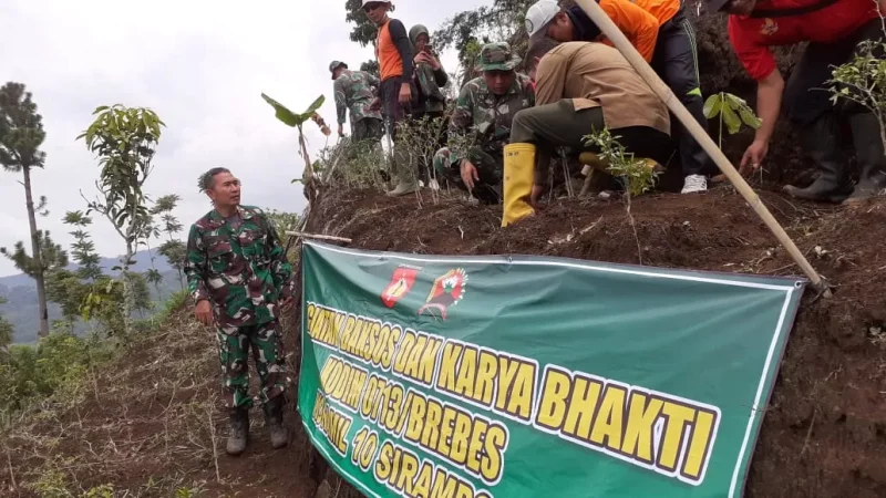 Brebes, Poskota.online – Kodim 0713 Brebes melakukan karya bakti dengan menanam 500 bibit pohon di kawasan Gunung Slamet, Desa Plompong, Kecamatan Sirampog, Brebes, Jawa Tengah. Kamis (04/01/2024).