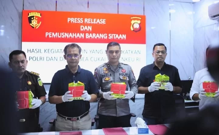 Dirresnarkoba Polda Kalbar Kombes Pol Thelly Iskandar Muda, S.I.K., melalui Kasubdit I Ditresnarkoba Polda Kalbar Kompol Bermawis, S.H., M.H., didampingi oleh JPU Kejati Kalbar E. Sinaga, Parik 1 Irbid 2 Itwasda Polda Kalbar Kompol Dedi Setiawan, BNN Provinsi Kalbar, Kasubbid Penmas Bidhumas Polda Kalbar AKBP Prinanto, serta Instansi terkait.