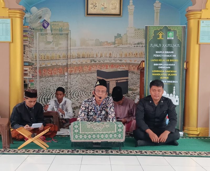 Brebes – Kegiatan pembinaan kerohanian Islam yang dilaksanakan di Lapas Kelas IIB Brebes adalah pengajian rutin Ngaji Kamisan yang diisi oleh dari LDNU (Lembaga Dakwah Nahdlatul Ulama) Kab. Brebes yang dilaksanakan setiap hari Kamis, (25/07).