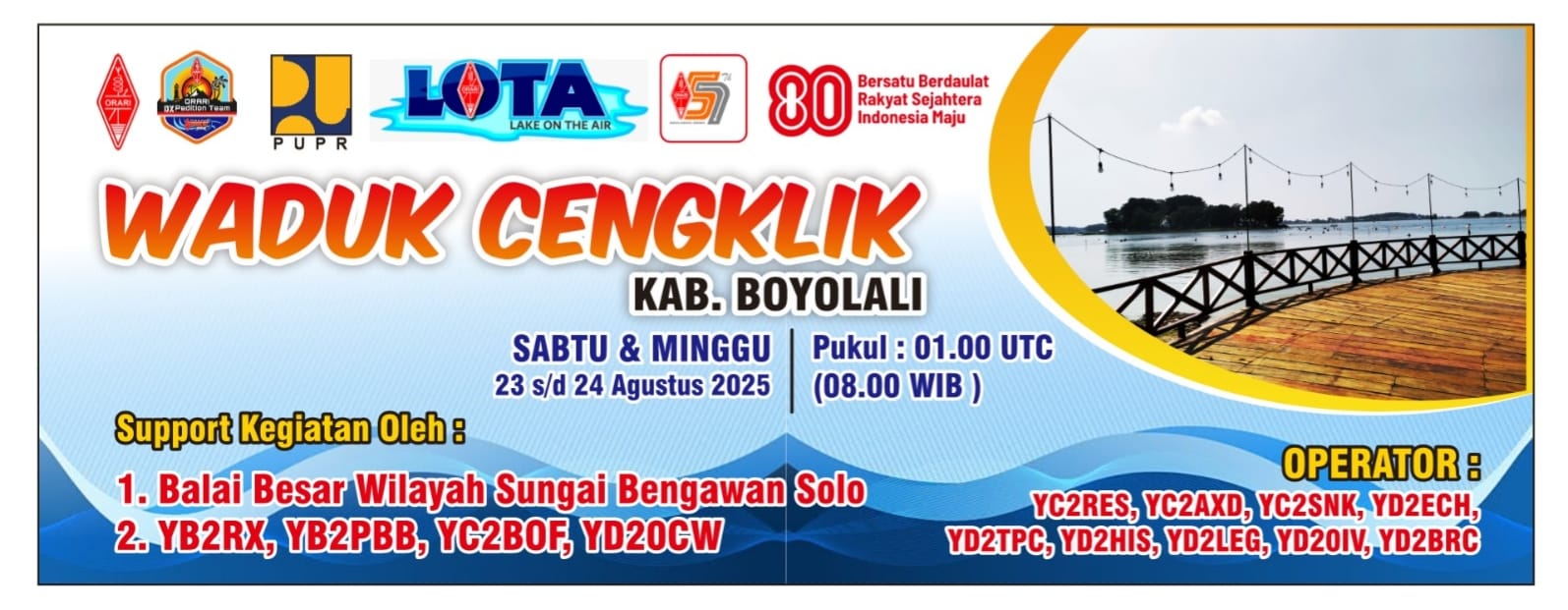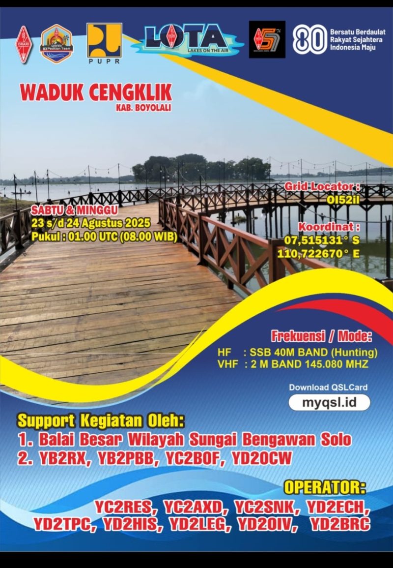 Boyolali Poskota Online , 24 Agustus 2025 – Organisasi Amatir Radio Indonesia (ORARI) Lokal Kota Surakarta sukses melaksanakan kegiatan DXPedition 7B2LOTA (Lake On The Air) di Waduk Cengklik, Kabupaten Boyolali, Jawa Tengah pada tanggal 23–24 Agustus 2025.