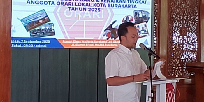 Surakarta Poskota Online Orari Lokal Surakarta mengadakan pelantikan anggota baru dan kenaikan tingkat pada Minggu (7/9/2025). Acara berlangsung di Pendapa Rumah Dinas Wali Kota Surakarta, Loji Gandrung.