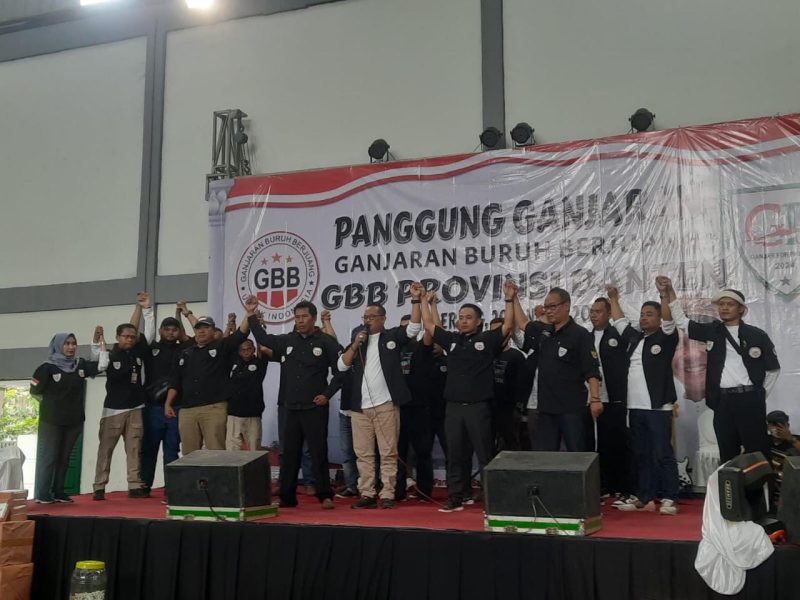 Tanpa terkecuali unsur buruh dan masyarakat sebagai simpatisan dari sosok Ganjar Pranowo di Provinsi Banten, yang tergabung dalam kelompok Ganjaran Buruh Berjuang ( GBB ) Provinsi Banten, hari ini menggelar giat bertajuk “PANGGUNG GANJARAN”, sekaligus sebagai momen pengukuhan kepengurusan Ganjaran Buruh Berjuang ( GBB ) Provinsi Banten.