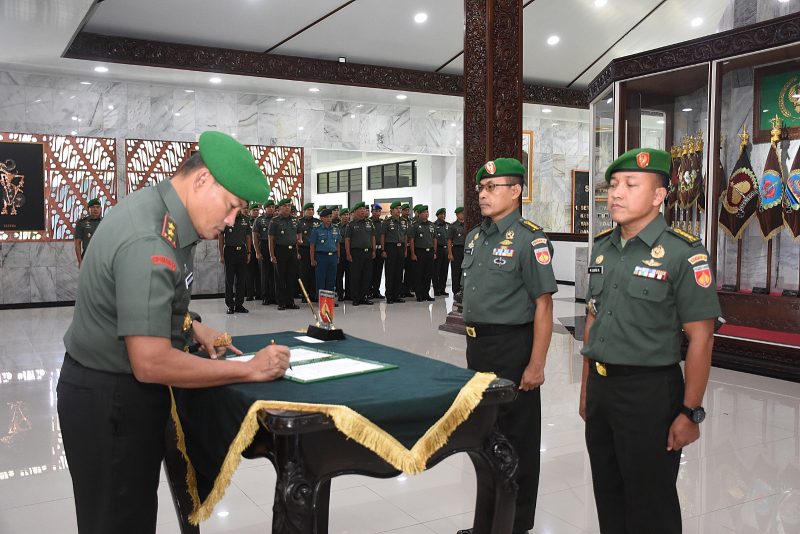 Semarang poskota.online – Terimakasih atas dedikasi yang diberikan selama berdinas di Kodam IV/Diponegoro dan selamat bertugas di kesatuan yang baru, ucap Pangdam IV/Diponegoro saat memimpin acara Sertijab Kepala Hukum Kodam (Kakumdam) IV/Diponegoro dari Kolonel Chk Sjaiful Nursaid, S.H., M.H. kepada Kolonel Chk M. Sjaiful Kustiawan, S.H., di Serambi Kehormatan, Makodam. Rabu (12/4/2023).