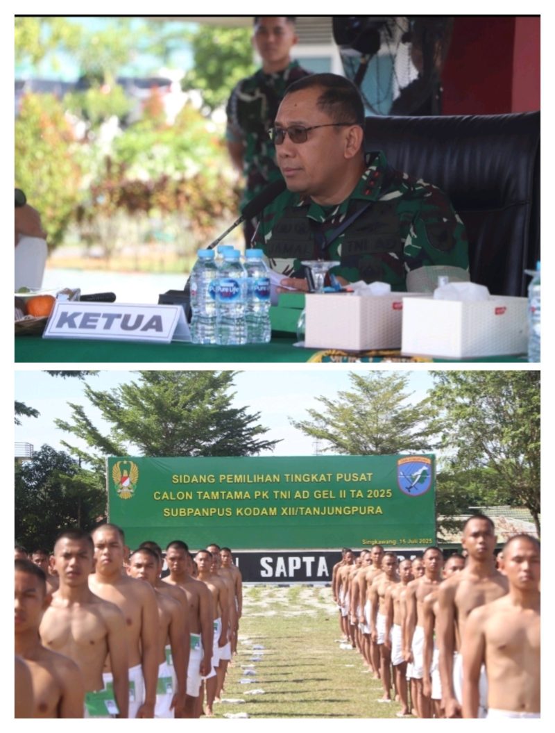 SINGKAWANG Poskota Online– Dalam rangka memperoleh sumber daya manusia yang berkualitas dan unggul guna memenuhi kebutuhan institusi TNI AD, maka pada hari ini Selasa (15/7/2025) dilaksanakan Sidang Pemilihan Penerimaan Calon Tamtama PK TNI AD Gelombang 2 TA 2025 Tingkat Sub Panpus Kodam XII/Tanjungpura.