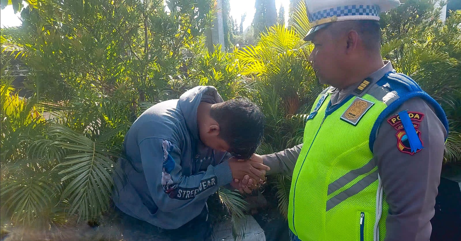 Atas peringatan dan edukasi yang diterimanya secara humanis, pengendara tersebut menyampaikan terima kasih sembari mencium tangan salah satu petugas sebagai bentuk penghormatan dan apresiasi.