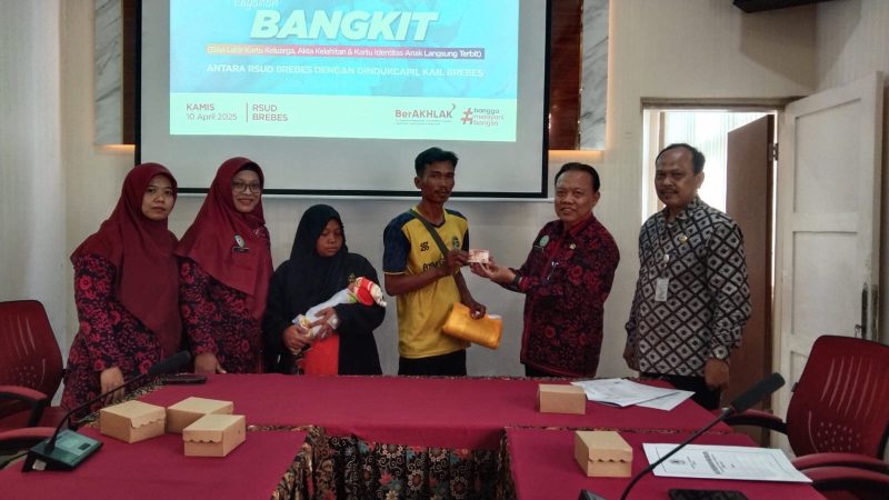 Brebes, Poskota.online – Dinas Kependudukan dan Pencatatan Sipil (Dindukcapil) Kabupaten Brebes meluncurkan program Bayi Lahir dapat Kartu Keluarga, Akta Kelahiran dan Kartu Identitas Anak Langsung (Bangkit). Terobosan baru dalam pelayanan publik tersebut resmi diluncurkan atas kerjasama antara RSUD Brebes dan Dindukcapil, yang berlangsung di RSUD setempati Kamis, (10/4/2025).