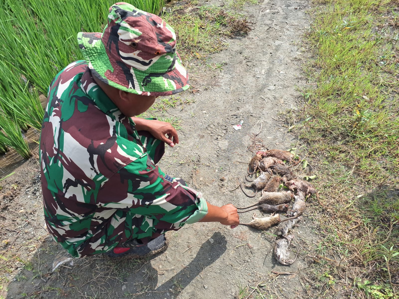 Pemberantasan Hama Tikus Di Persawahan Kelurahan Kebondalem Di Laksanakan Koramil 01/Pemalang Dan Tokoh Masyarakat