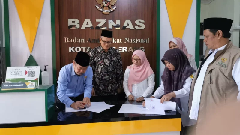 Tangerang, poskota.online- Dalam rangka meningkatkan kwalitas kesehatan masyarakat khususnya yang ada di Kota Tangerang, Ketua Badan Amil Zakat Nasional (Baznas) Kota Tangerang KH. M. Aslie Elhusyairy, S.Ag resmi menandatangi kerja sama perjanjian dengan Dinas Kesehatan (Dinkes) Kota Tangerang pada Rabu, 16 Agustus 2023.
