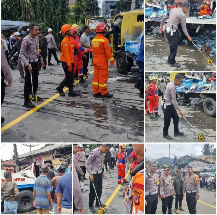 Kapolsek Cisarua Kompol Edy Santosa, S.Pd,.MH mengatakan bahwa benar telah terkait Laka Lantas Beruntun pada Hari Selasa 23 Januari 2024 sekira pukul 11.05 Wib di Jl Raya Puncak Depan SDN Tugu Selatan KM 85 Kp Hegarsari Rt3/4 Ds Tugu Selatan Kec cisarua Kab Bogor, dimana kronologis awal terjadinya Laka lantas datangnya kendaraan Mitshubishi Center Box No Pol B-9740-UXX bergerak dari arah Puncak menuju arah Gadog kondisi jalan menurun dan menikung ke kiri dan pada saat di TKP langsung menabrak Kendaraan sepeda motor Honda Beat No Pol F-2713-RO dan kendaraan Suzuki XL7 No Pol F-1582-AAC, lalu membentur kembali ke kendaraan Suzuki Carru Angkot No Pol F-1994-NZ yang Sesang berhenti di badan jalan sebelah kiri dari arah Puncak, kemudian Kendaraan Suzuki XL^ No Pol F-1582-AAC terdorong ke kanan jalan membentur kendaraan Daihatsu Grandmax Angkot No Pol D-1914-XA yang bergerak dari arah Gadog menuju Ke Puncak, dan membentur kembali kendaraan yang sedang terparkir Mitshubishi L300 Box No Pol BB-8863-FA yang sednag parkir di bahu jalan sebelah kanan dari arah puncak, kemudian kendaraan Mitshubishi Canter Box No Pol B-9740-UXX membentur sepeda motor Honda Beat No Pll B-4044-SEH yang bergerak dari arah berlawanan san terus melaju membentur 2(dua) kendaraan sekaligus yaitu sepeda motor roda dua juga belum di ketahui identitas kr masih berada di bawah truk box dan menghantam tembok pilar rumah makan dan toko bengkel C