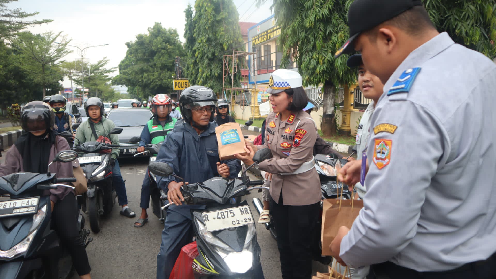 “Dalam kegiatan ini juga kemas dengan sosialisasi tertib lalu lintas kepada pengendara. Kami berharap kesadaran masyarakat meningkat untuk tertib berlalu lintas demi keselamatan bersama,” ujarnya.