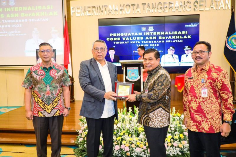 Hal tersebut disampaikan Wali Kota Tangerang Selatan Benyamin Davnie saat mendampingi Sekretaris Jenderal (Sekjen) Kementerian Dalam Negeri (Kemendagri) Suhajar Diantoro, dalam kegiatan Percepatan Implementasi Reformasi Birokrasi di Tangerang Selatan dalam kaitannya internalisasi core values ASN BerAKHLAK, di Aula Blandongan, Puspemkot Tangsel, Kamis (08/06).