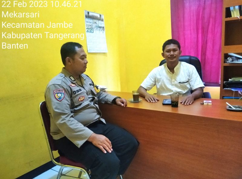 Kab.Tangerang,poskota.online – Untuk mempererat Silaturahmi Babinkantibmas Polsek Tigaraksa Polresta Tangerang Polda Banten Bripka Dian Eka melaksanakan Saba Desa Di Kantor Desa Daru Kecamatan Jambe Kabupaten Tangerang, Rabu (22/2/2023).