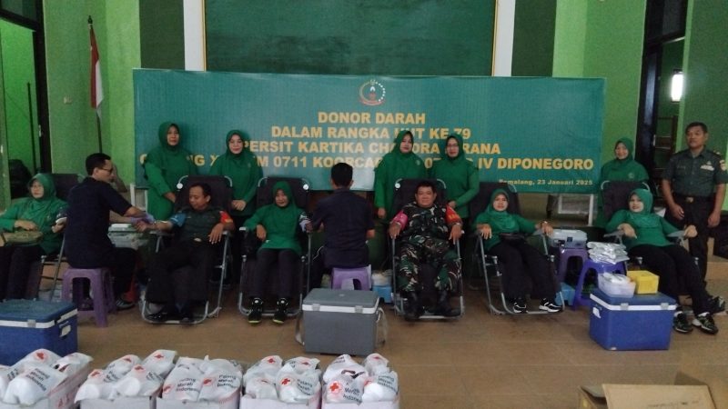 Pemalang, Poskota.online – Dalam rangka memperingati Hari Ulang Tahun (HUT) ke 79 Persit Kartika Chandra Kirana (KCK) tahun 2025, Persit KCK Cab. XXI Kodim 0711/Pemalang Koorcab Rem 071/Wijayakusuma PD IV/Diponegoro menyelenggarakan bakti sosial donor darah yang dilaksanakan di Aula Oerip Soemohardjo Jl. Brigjen Katamso No. 43 kelurahan Sugihwaras kecamatan/kabupaten Pemalang,, Kamis (23/1/2025).