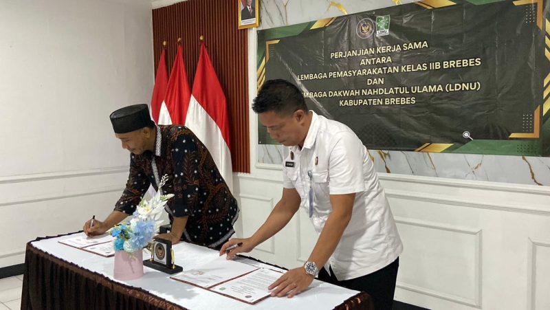 Brebes, Poskota.online – Dalam upaya memperkuat pembinaan kepribadian dan spiritual bagi Warga Binaan Pemasyarakatan (WBP), Lembaga Pemasyarakatan (Lapas) Kelas IIB Brebes menjalin sinergi dengan Lembaga Dakwah Nahdlatul Ulama (LDNU) Kabupaten Brebes melalui penandatanganan Perjanjian Kerjasama (PKS), Kamis (13/11/2025).