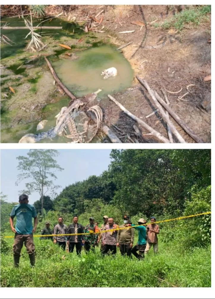 Yang mana seorang warga yang juga pemilik kebun Sdr Hamdan Als Pak Endom menemukan kerangka manusia tersebut dalam keadaan terendam oleh genangan air.
