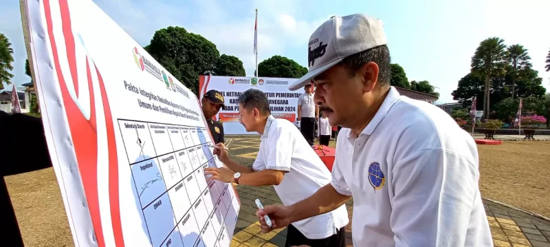 Pada kesempatan itu, Sekretaris Daerah Banjarnegara Indarto dan para pejabat OPD juga menandatangi pakta integritas aparatur sipil negara dalam pemilihan umum dan pemilihan kepala daerah serentak tahun 2024.